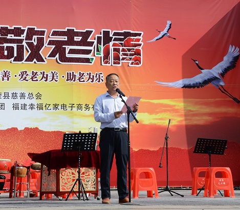 2016年9月30日上午,宁德市慈善总会、柘荣县慈善总会联合县老年大学艺术团、福建幸福亿家电子商务有限公司、柘荣喜洋洋婚礼企划等在柘荣县仙屿公园隆重举行“九九重阳节 浓浓敬老情”及柘荣县首届“孝德家庭”活动。此次活动,全县范围内评选“孝德家庭”代表13人,农民、工人、老党员、老干部等各行业代表及演职人员300多人参加活动。市慈善总会缪耕山会长出席活动并致词;县妇联韦莉主席出席活动并宣读了柘荣县首届“孝德家庭”人员名单;福建幸福亿家电子商务有限公司爱心礼包捐赠仪式。